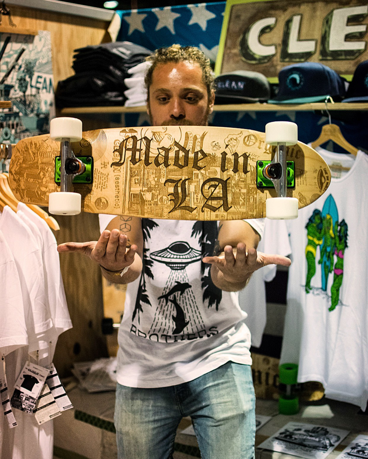 Booth design and all Agenda graphics were designed and built by Charlie in 2017 for the Agenda Trade Show in Long Beach, CA using only scrap and recycled materials. The entire 10x10' booth was designed to fit within a regular 4-door sedan and could be reconstructed on site within an hour. Charlie was also hired by Aaron Levant, founder of Agenda, to design an exclusive marketing campaign print that was given to all their major 2017 clients as part of their welcome package.