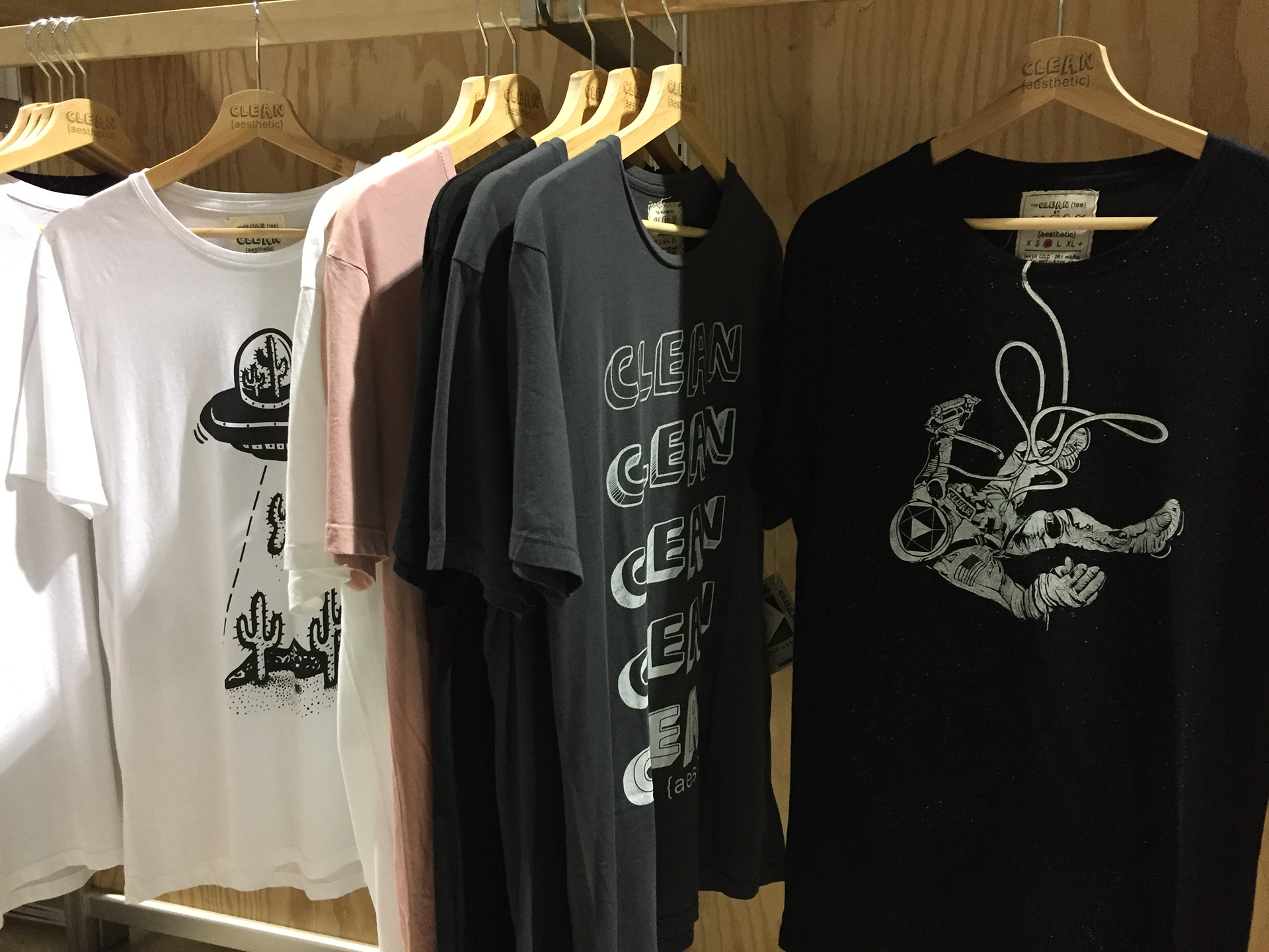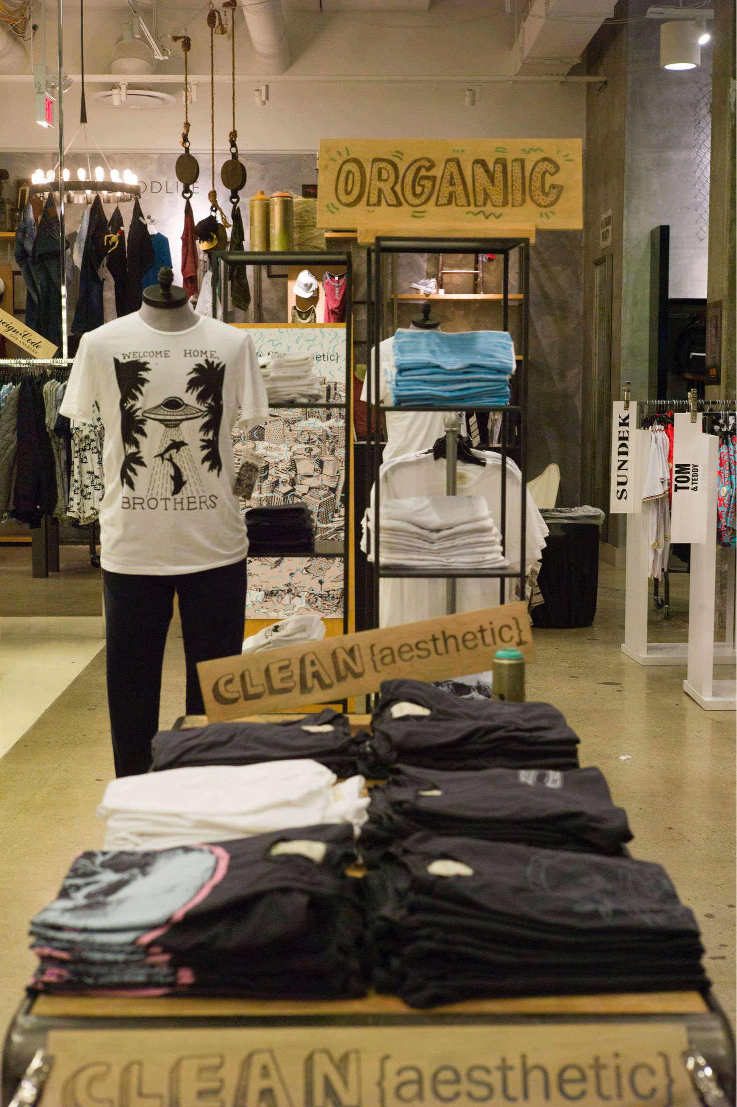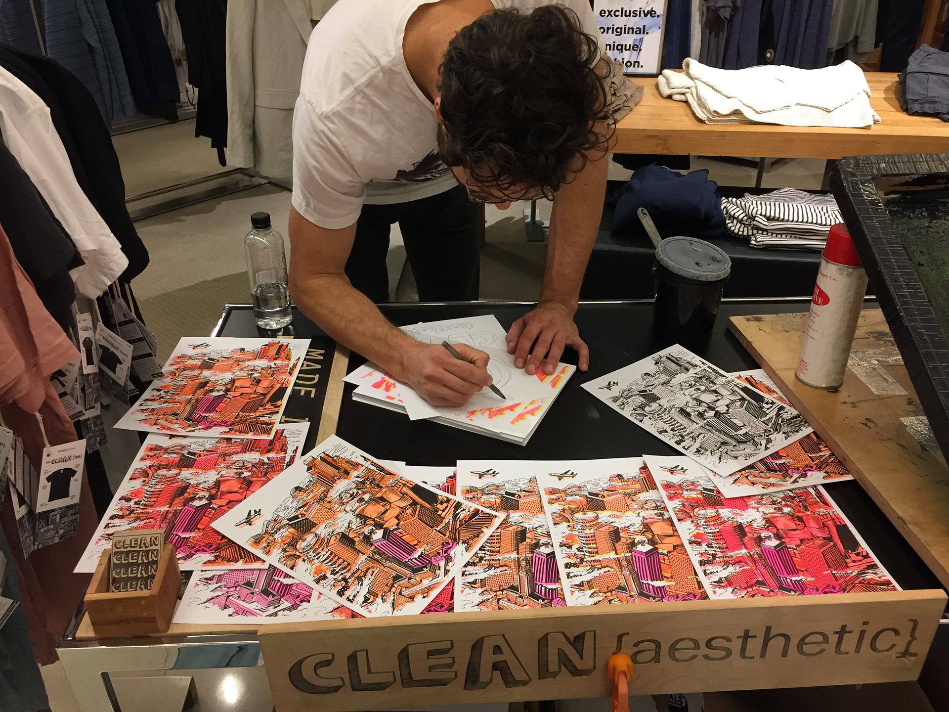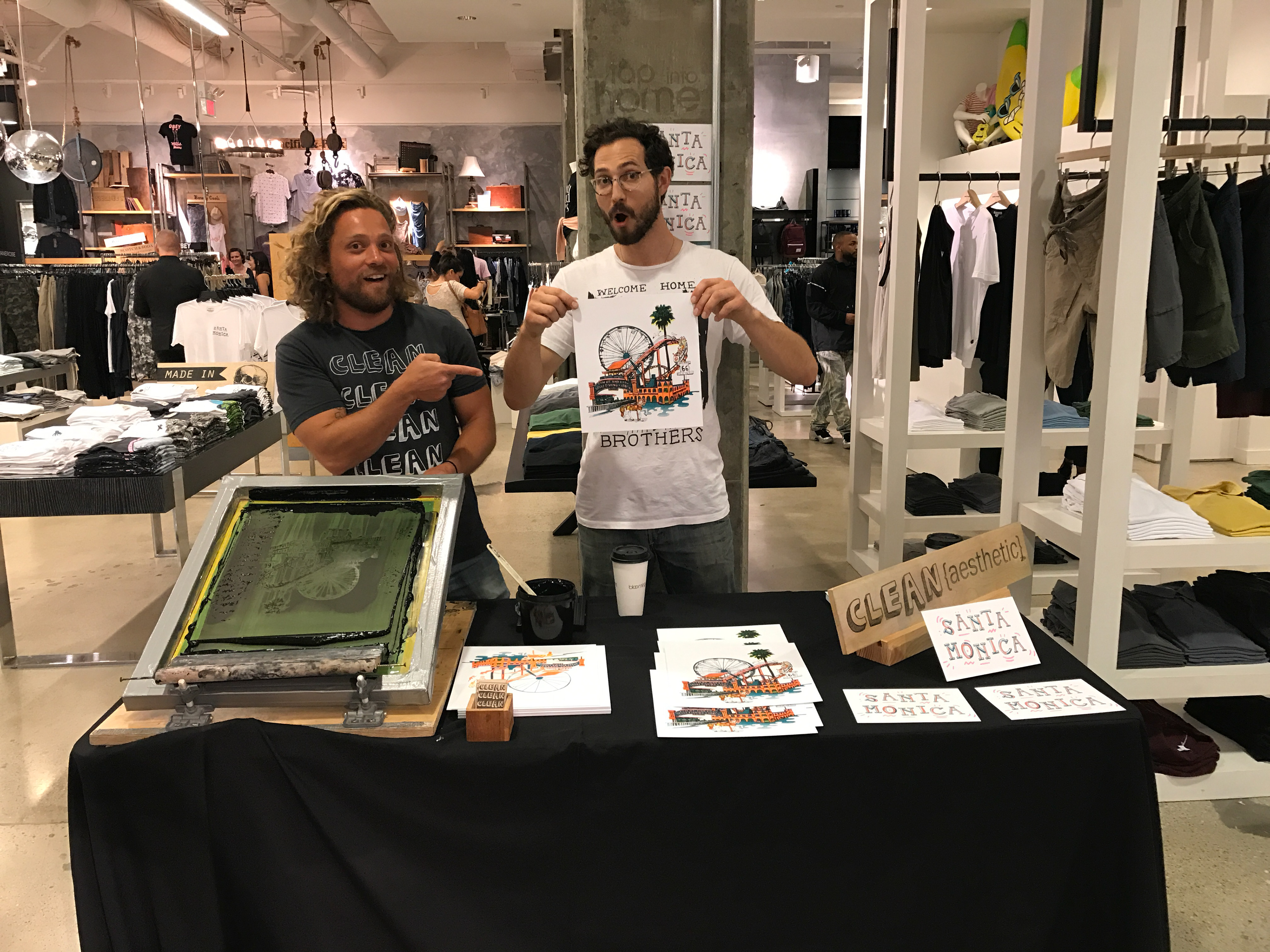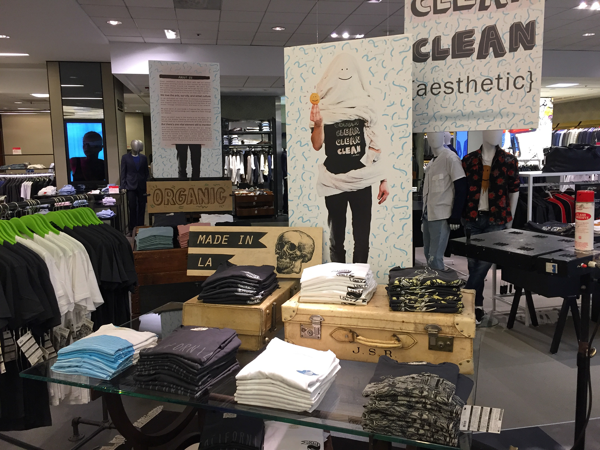 Store displays, line guides, signage, and live printing event materials were all designed for Bloomingdale's by Charlie. Trunk shows and live events were developed and implemented in all nine California locations and the Clean {aesthetic} line of apparel was sold throughout the country.