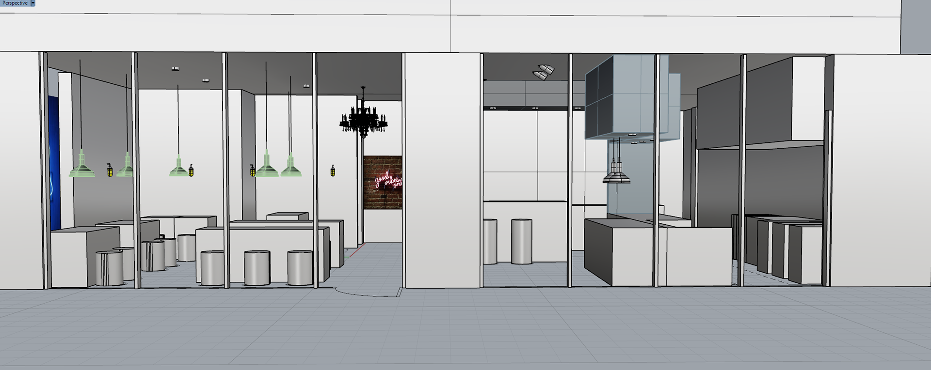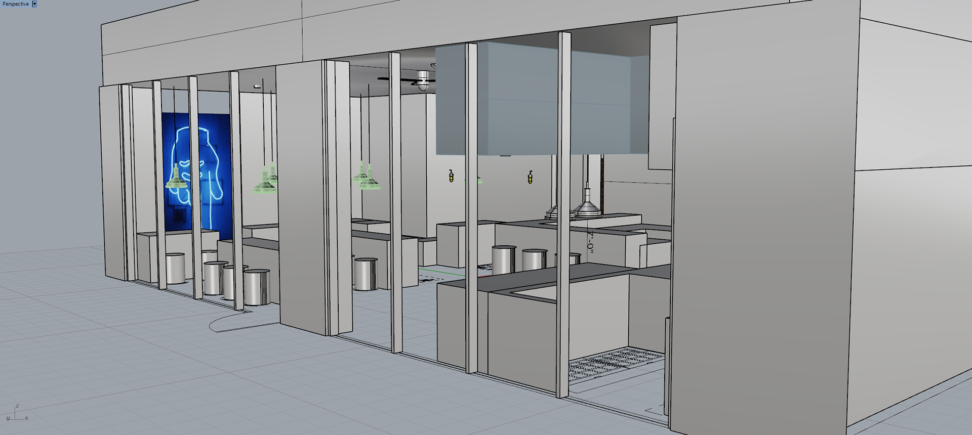 Mee & Greet was conceptualized and designed exclusively by Charlie over seven months in 2017, working directly with the owner to create the Interior space of this strip mall restaurant location. The initial sketches were done on Adobe Illustrator, 3D models were created in Rhino, and the renderings were outsourced to his design team.